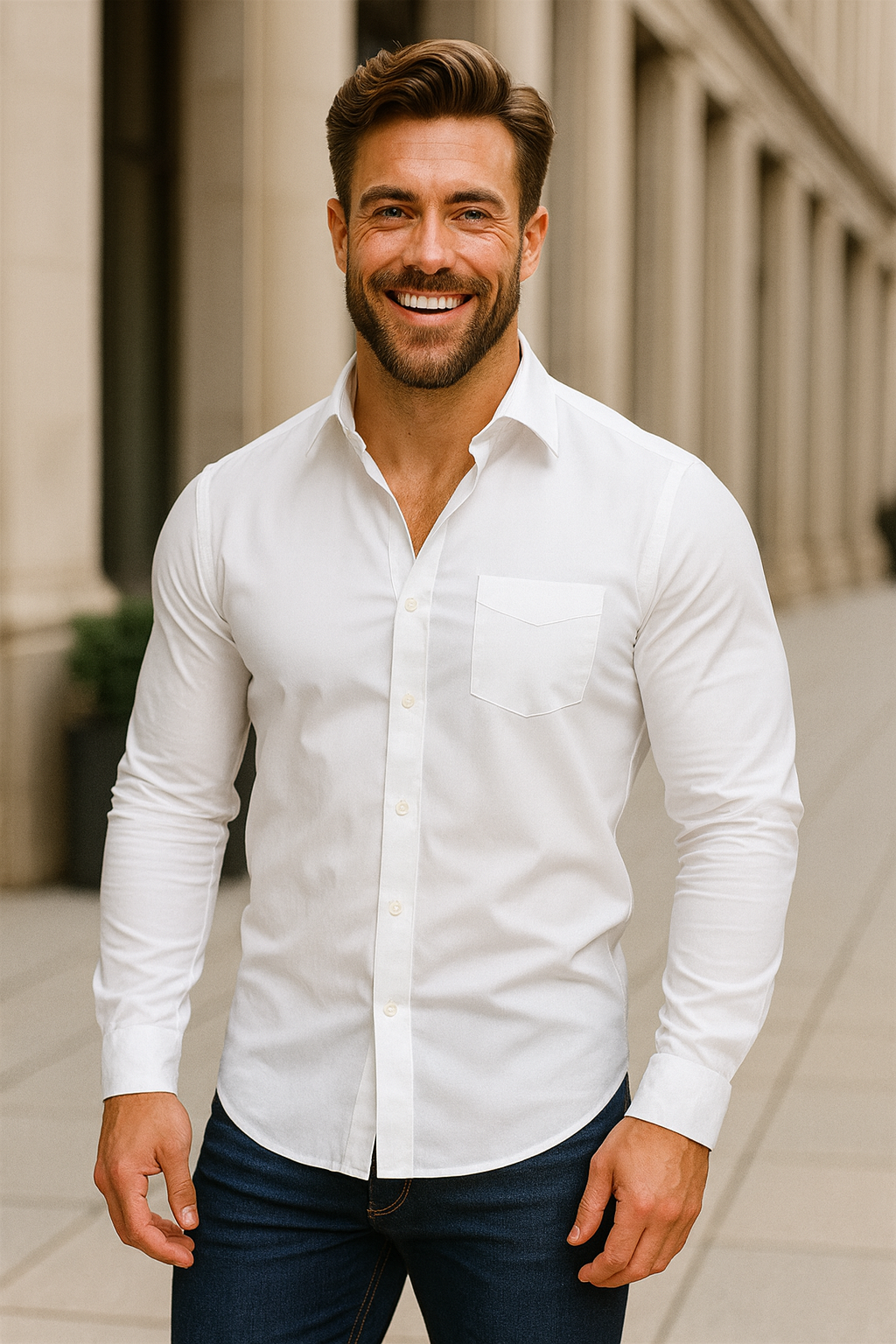 Męska Koszula z Długim Rękawem – Klasyczny Dopasowany Krój