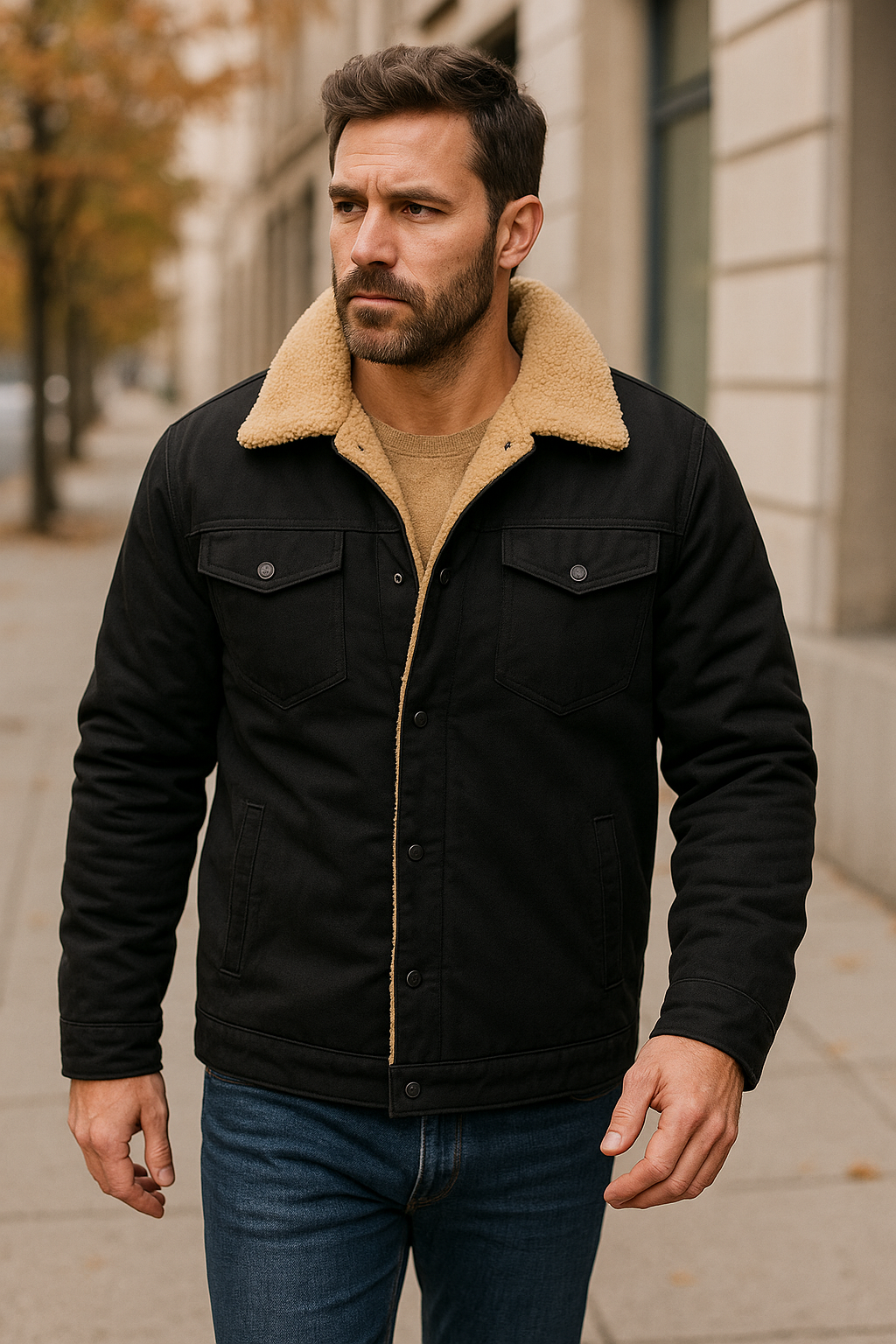 Męska kurtka z podszewką – model Sherpa z kieszeniami